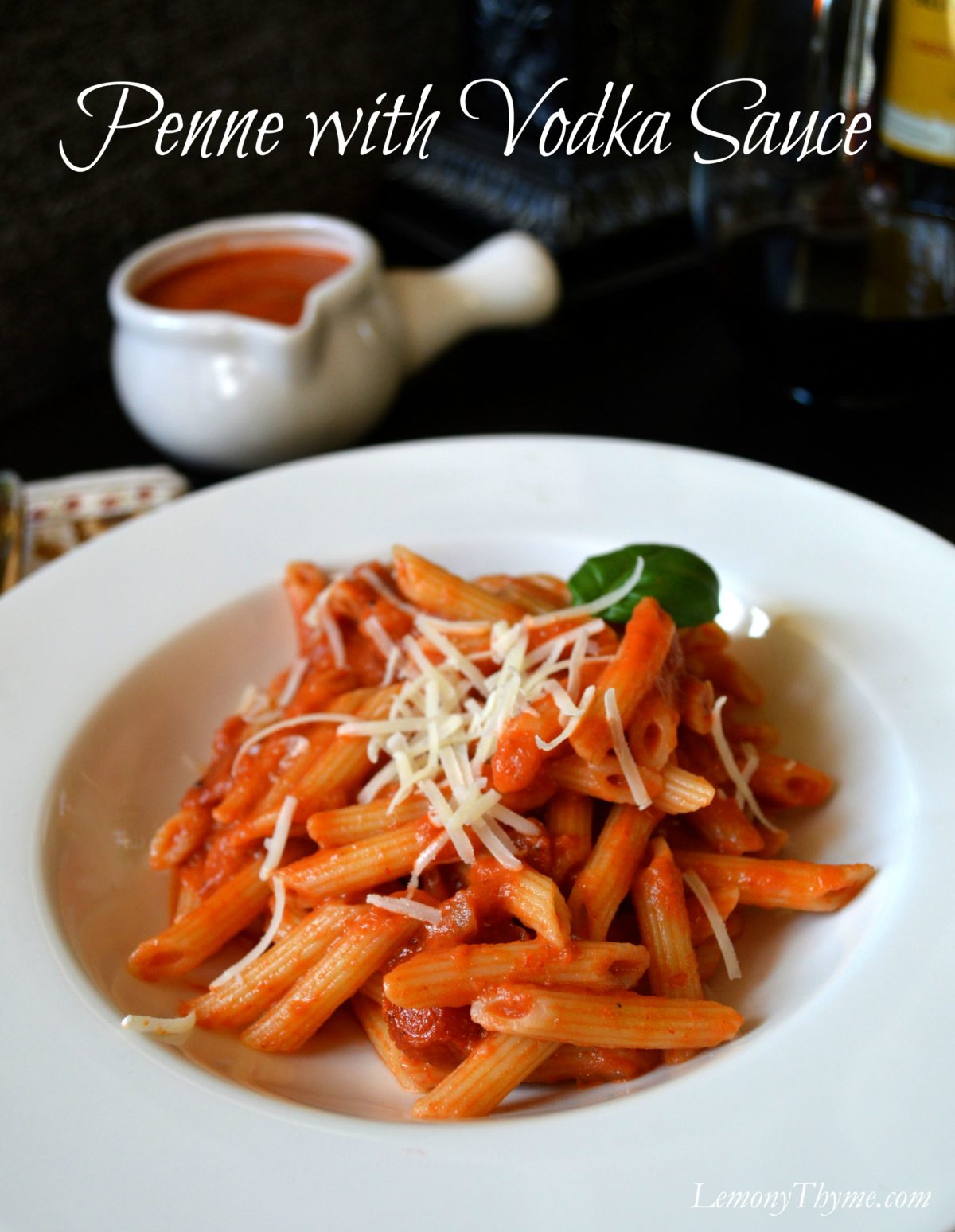 - To serve, toss penne in vodka sauce. Sprinkle with freshly grated parmesan cheese and fresh basil.