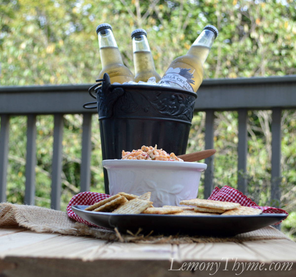 Since we’re still enjoying some beautiful summer-like weather I decided to make a nice big batch of Pimento Cheese Dip, sit out on the back porch, and enjoy every minute of. Trust me this is one sure fire way to gather the family around. This nice big batch…..never saw sundown.