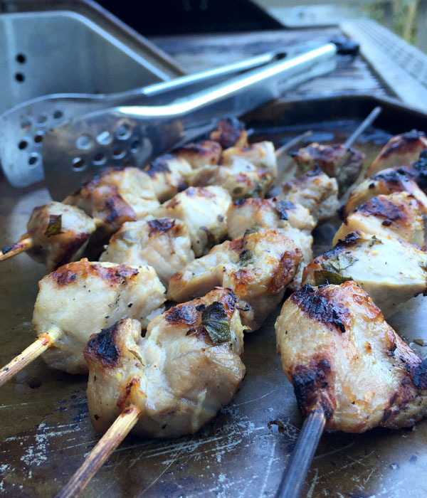 It’s time for a relatively wordless Wednesday. These skewers of happiness happened. A simple marinade of olive oil, lemon juice, red wine vinegar, garlic and fresh oregano infuse the tender pork chunks with classic Greek flavor.