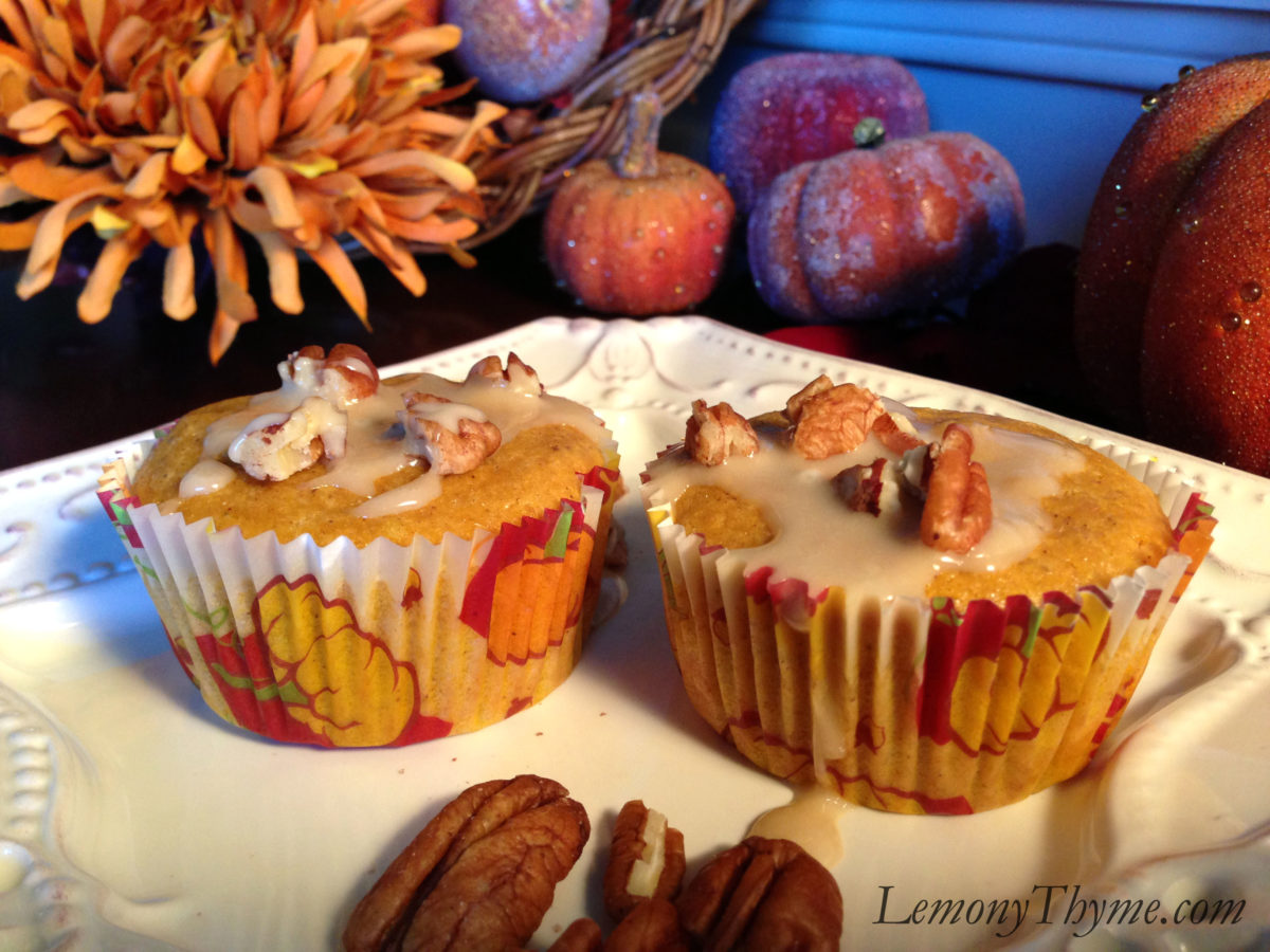 Pumpkin Rum Muffins {with Maple Pecan Glaze}