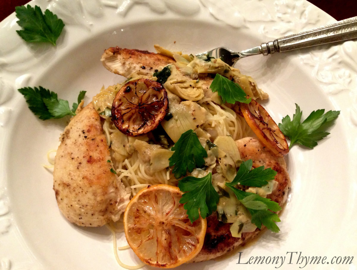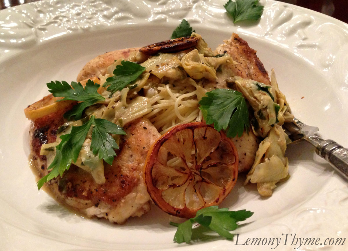 I had spotted this wonderful Roasted Lemon & Artichoke Chicken recipe on my friend Sandi ~ A New York Foodie’s page. We adore Mediterranean flavors and the combination of lemon, artichokes, and capers go so beautifully together.