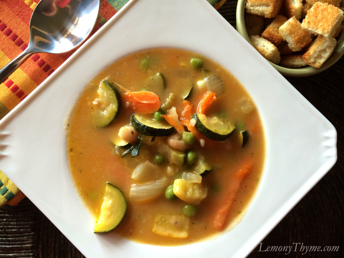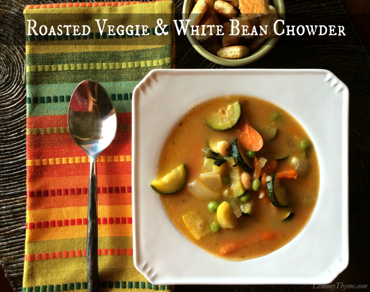Hanging on to every fresh produce summer moment over here on Lemony Thyme.  I’m calling this soup Roasted Veggie & White Bean Chowder because it has a creaminess about it and chowders are amazing.  The beautiful thing is the creamy came from the white beans not cream or butter.  That puts this soup squarely in our Healthy Choices category.