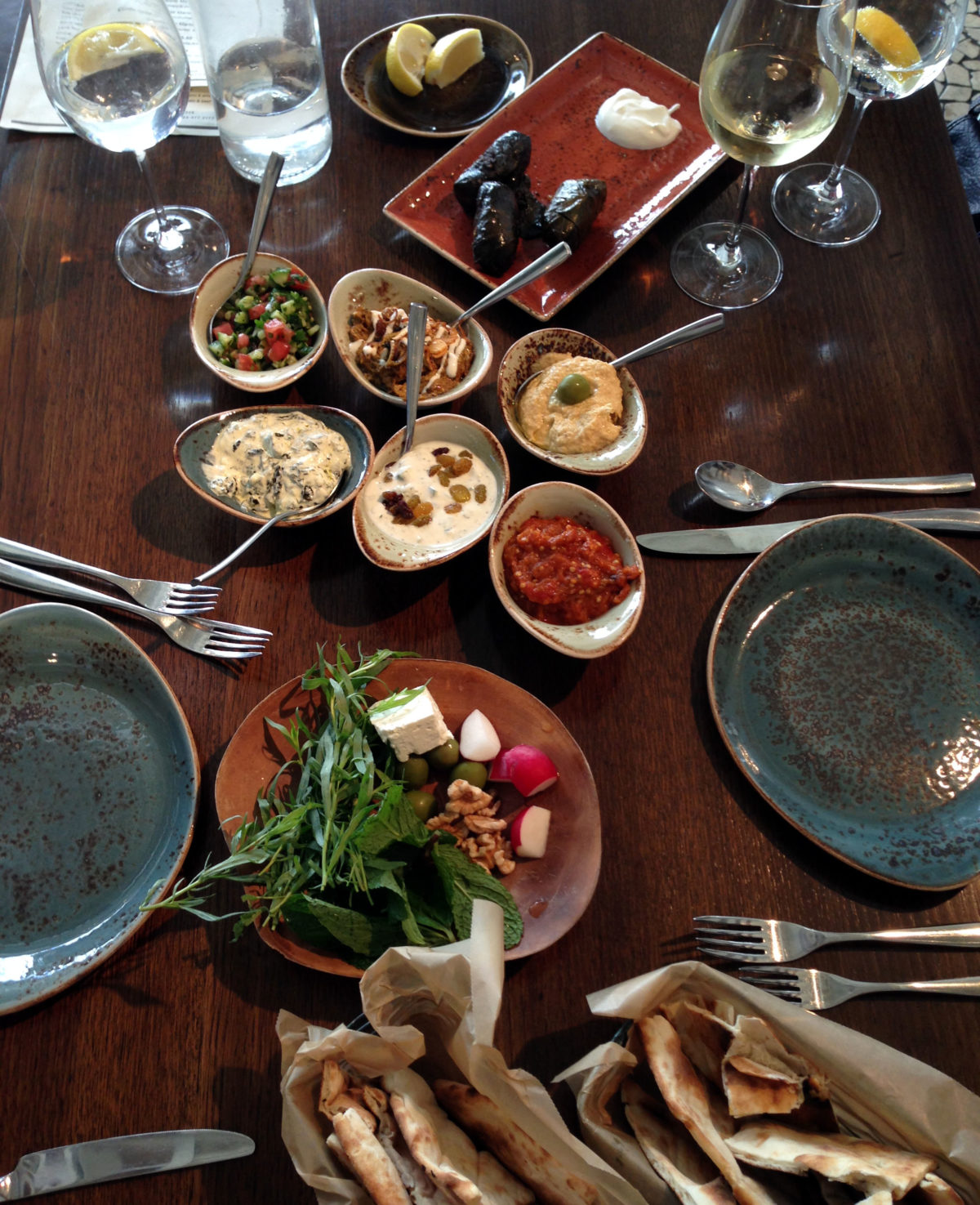Before that was delivered she brought us a complimentary house appetizer plate to “awaken our palates.” The beautiful wooden plate consisted of fresh mint and tarragon, feta cheese, olives, walnuts, radishes, and two baskets of warm taftoon flatbread. I looked across the table at my beautiful daughter smiling back at me with contentment and she said “I am so happy right now.”