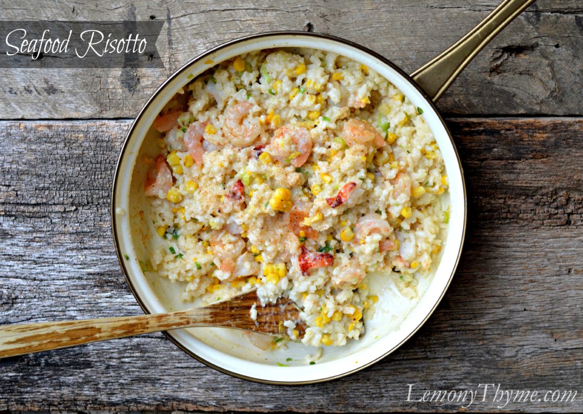 I took our Basic Risotto Recipe, added seafood, roasted corn and jalapeno, herbs and aromatics and transformed it into a Seafood Risotto meal to remember.
