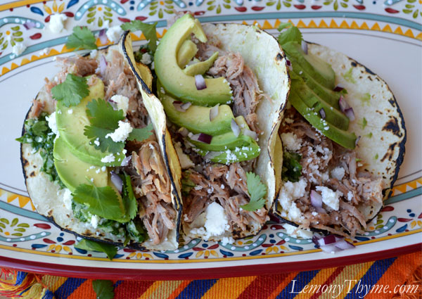 So instead of Carnitas, we have Shredded Pork Tacos {with Chimichurri Sauce}.