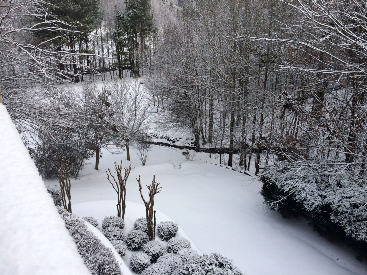 Welcome Winter Thyme 2014. Today is our second straight day of snowbound living for the second time this year. We live in the sunny south, where the peaches grow and our people are as sweet as our tea. We’re not accustomed to waking up to this, although I must say it’s quite beautiful.