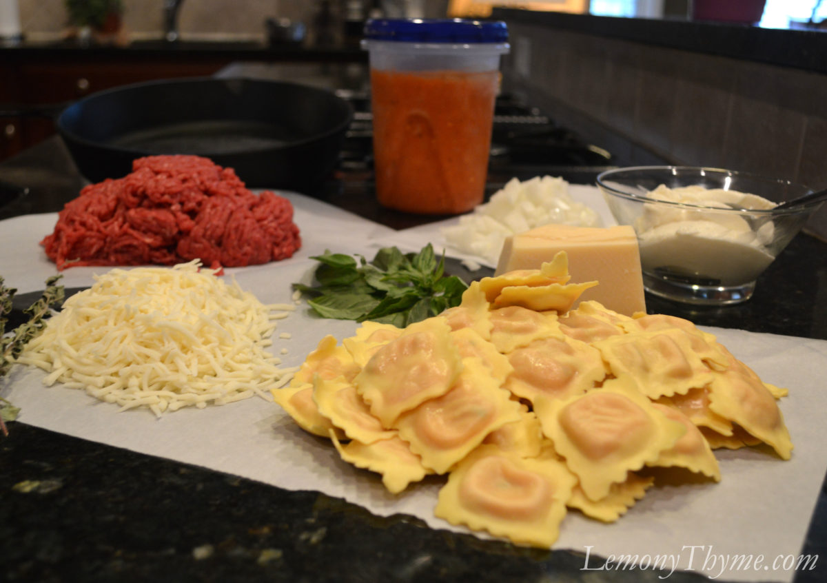 - Preheat oven to 350 degrees. Assemble all ingredients, beat egg with ricotta cheese and reserve.
