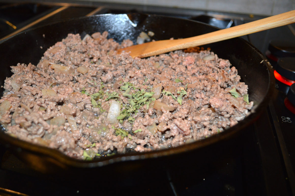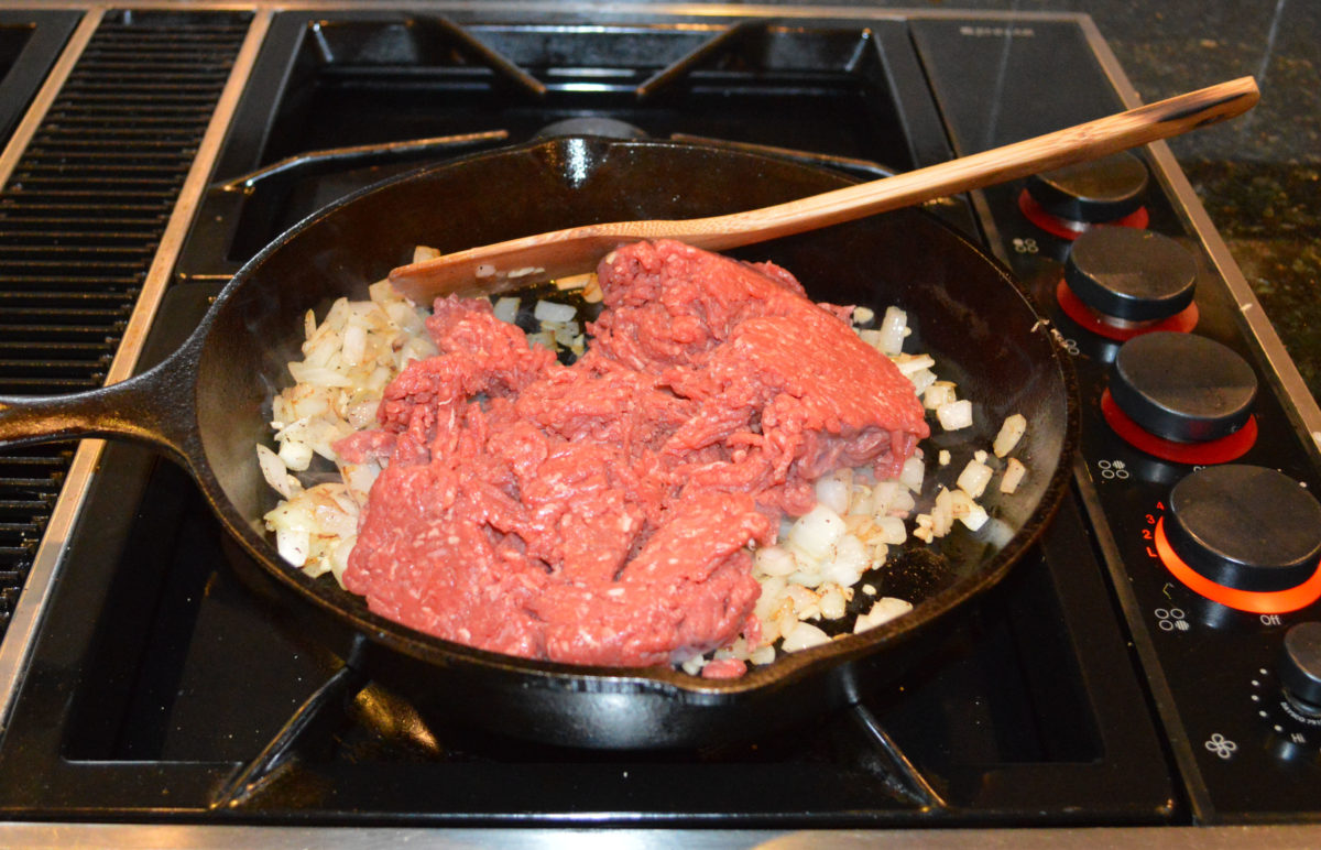 Step 3 ~ Add ground beef, brown, then drain off any fat.