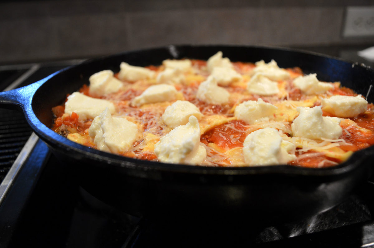 If you’re looking for a ‘family friendly’ one-pot-wonder our Skillet Cheesy Ravioli Bake might just be the one. The ingredients are added and cooked in layers, then into the oven for a final bake.