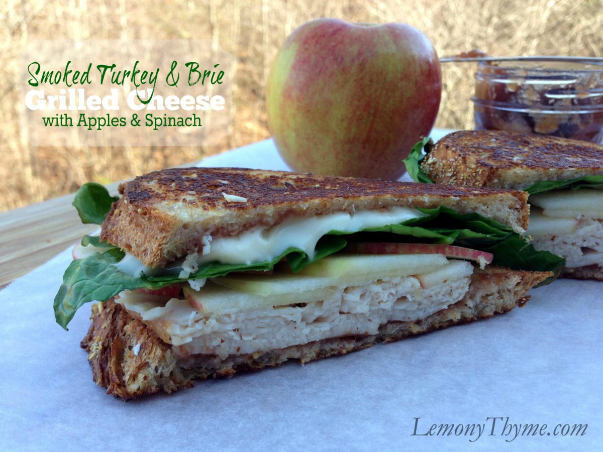 Smoked Turkey & Brie Grilled Cheese with Apples & Spinach {and Apple Butter}