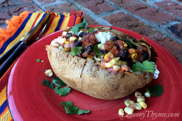 I simply kicked up my favorite Fresh Tomato Salsa by adding black beans and corn, then spooned that over my Perfectly Baked Potato, topped with Fat Free Cottage Cheese. You’ll love the cool cheese as a contrast to the zippy salsa. This is a guilt-free plate of Win.