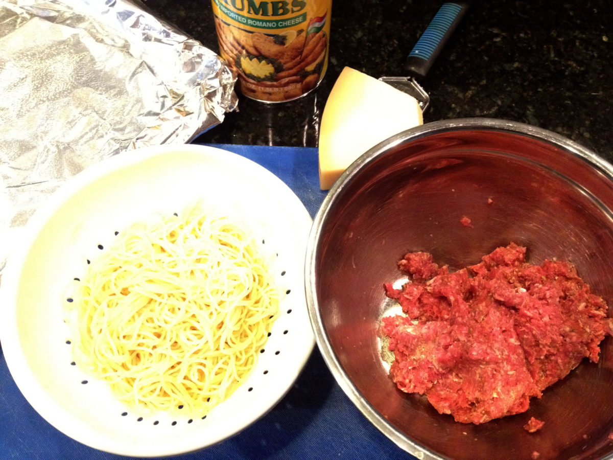 • Mix all remaining meatball ingredients, then add spaghetti.