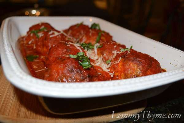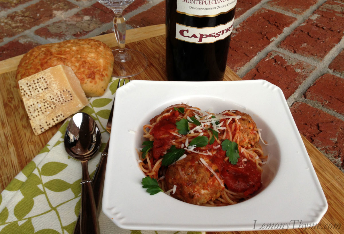 Nothing really special about this Spaghetti & Meatballs recipe. You may be wondering why I would even bother posting it. Lemony Thyme, above all else, is a place for me to record recipes and share them. The truth is it has become a recipe box for me and I use it as a resource, as I hope some of you will. Oh and there is this crazy idea that popped into my head about making a Spaghetti & Meatball Grilled Cheese Sandwich…in honor of National Grilled Cheese Month of course ;)