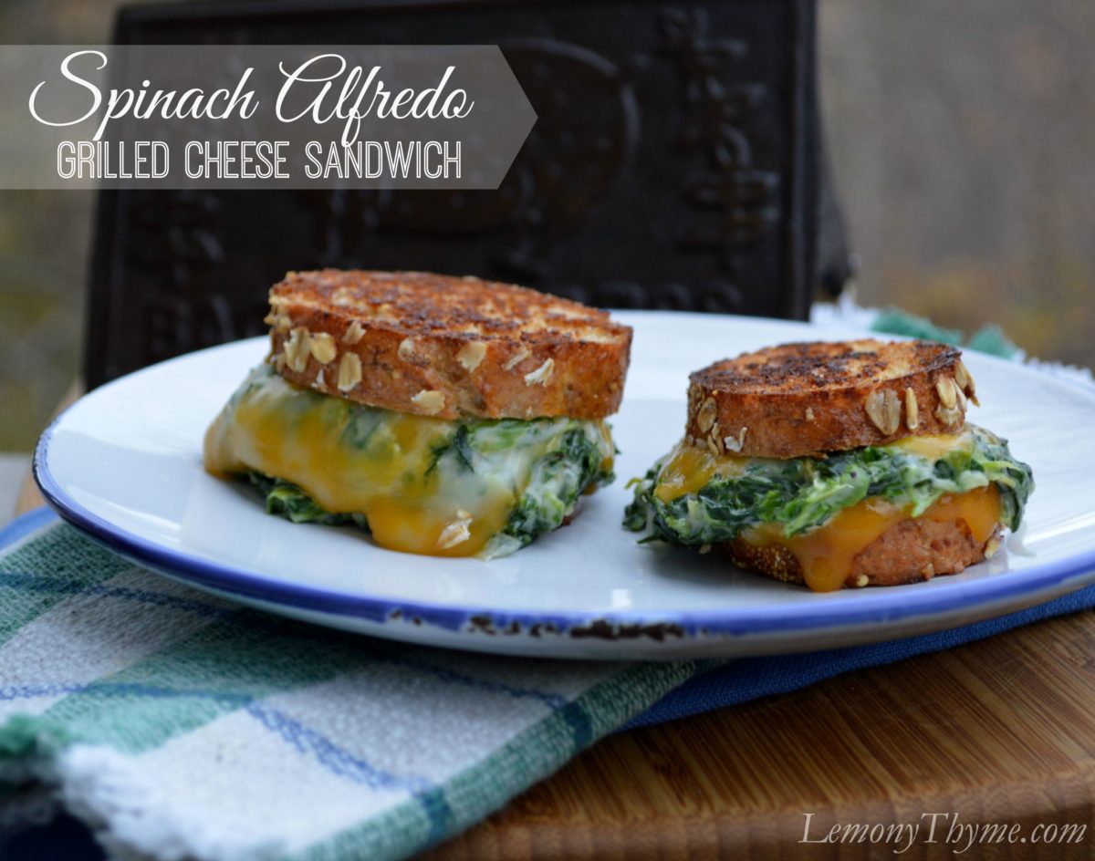 Spinach Alfredo Grilled Cheese Sandwich from Lemony Thyme