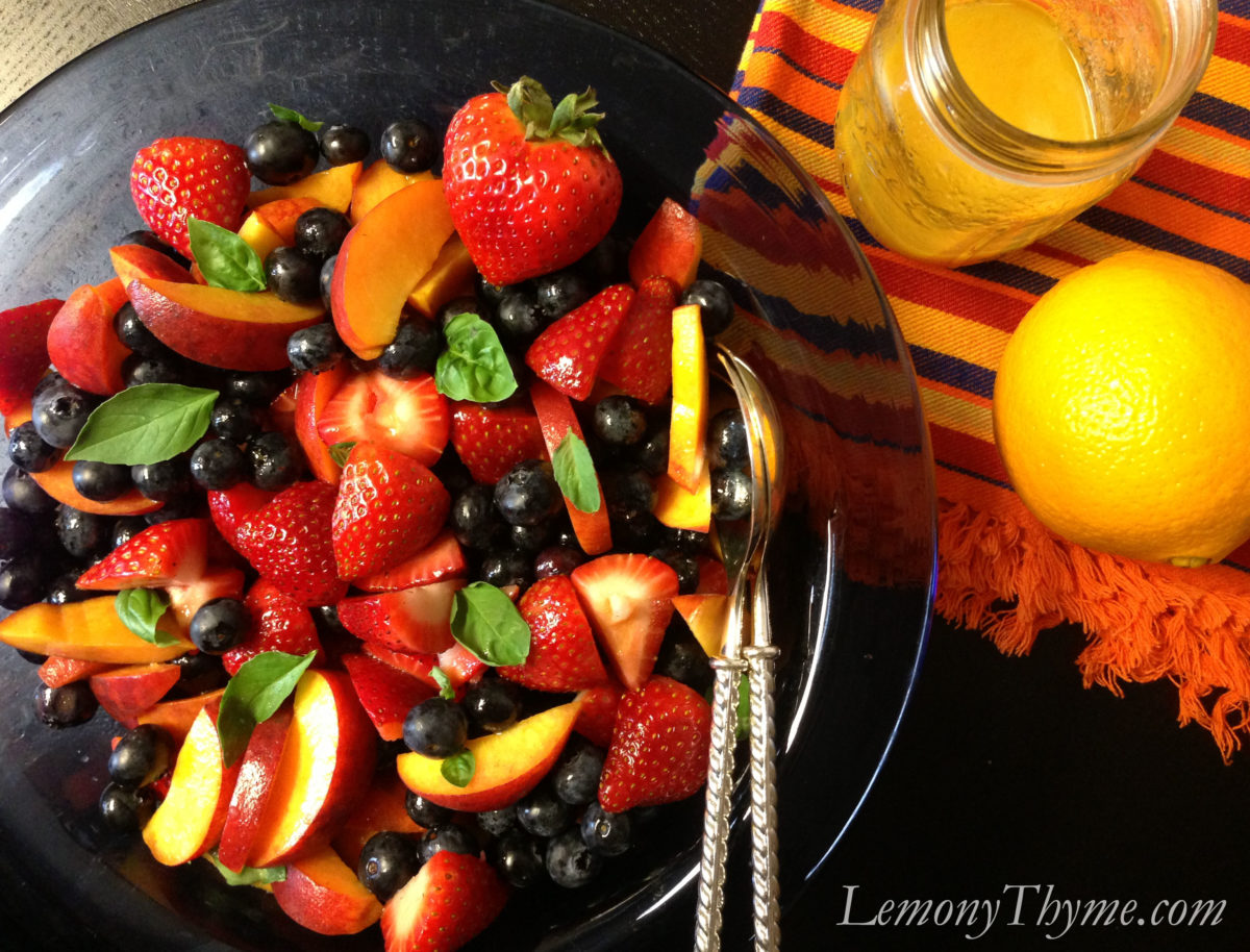 Peach, Berry & Basil Fruit Salad with Orange Vinaigrette.