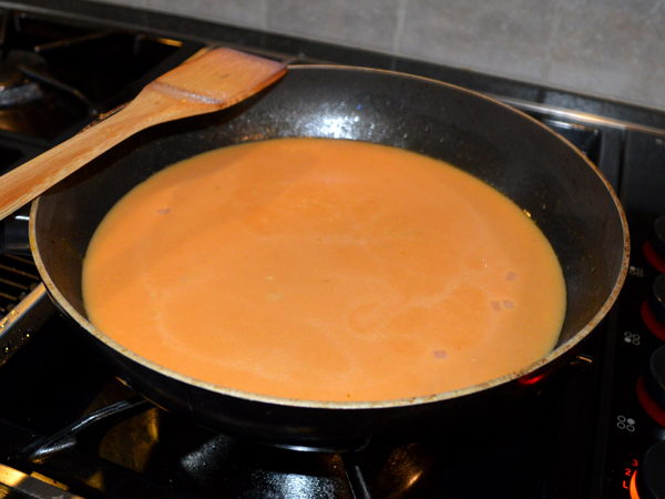 - Saute onion in olive oil until tender. Add in tomato paste, garlic, ginger, coconut milk, pumpkin, and broth. Combine until heated through. Season with salt & pepper.
