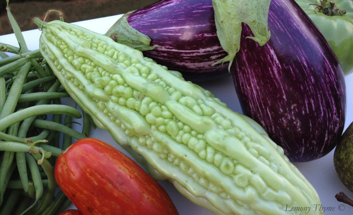 Bitter Melon! I added the exclamation point because this might just be the coolest things I’ve found at a farmers’ market since zephyr squash. He shared that bitter melon is VERY bitter, however it has a wealth of health and medicinal properties associated to it. He recommended I read this Bitter Melon article on Wiki for the skinny on this crazy fruit. At the time of this posts we have not yet decided how we will use bitter melon in a recipe, but I’m certain we’ll add lots of punch!