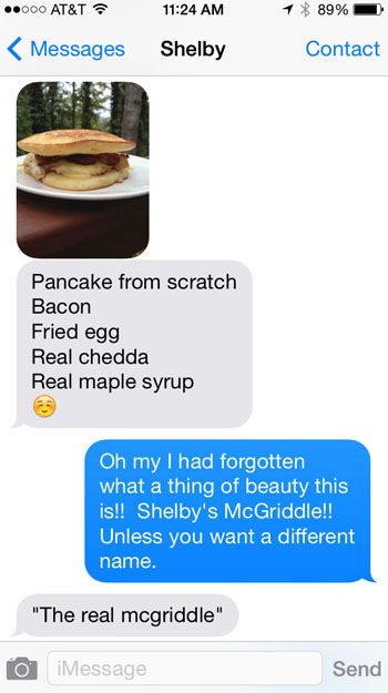 If you don’t already have a jug of this in your fridge you’re missing out. Pure Maple Syrup is not only essential on The Real McGriddle, but it’s a wonderful natural sweetener, beautiful in dressings and marinades, and heavenly drizzled over ice cream. When we moved south from New Hampshire I connected with a sugar house not far from our home town. I went online and bought one jug for Shelby and one jug for us. Best $20 I’ve spent in a long time.