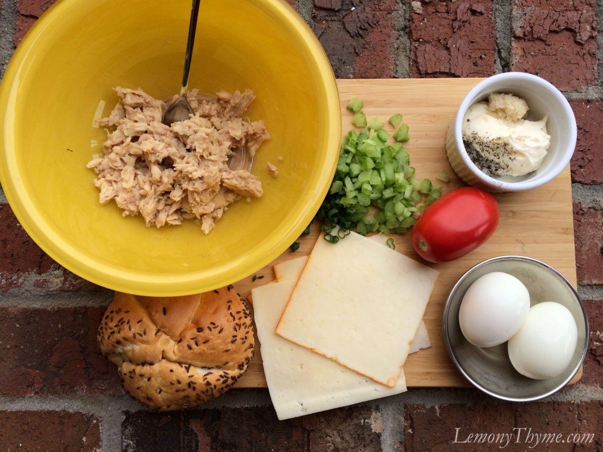 Sometimes a recipe comes to me based on one single ingredient.  In this case it was a gorgeous Kimmelweck roll in the case at the bakery.  I couldn’t wait to get home and make tuna melts for lunch.  I promptly proceeded to burn the bun.  With all other ingredients gathered I turned to my freezer to find the tail end of a pack of Party Rye.  And that is how the Tuna Melt Grilled Cheese Slider was born.