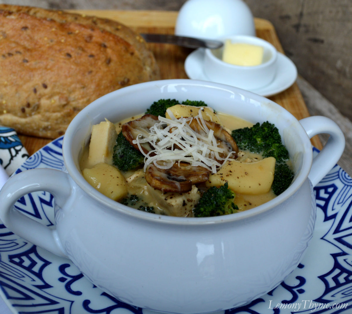 Turkey Divan Soup {with Gnocchi & Parmesan Mushrooms}