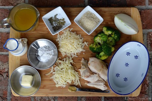 Sauté onion in melted butter, once translucent dust with flour and continue cooking 1-2 minutes until flour begins to bubble. Slowly whisk in the broth, a dollop of Dijon mustard and seasonings. Continue stirring, allowing mixture to thicken and come to a gentle simmer, then add in cream and shredded Parmesan and Gruyere cheese. This simple sauce brings a nice richness to the Turkey Divan.