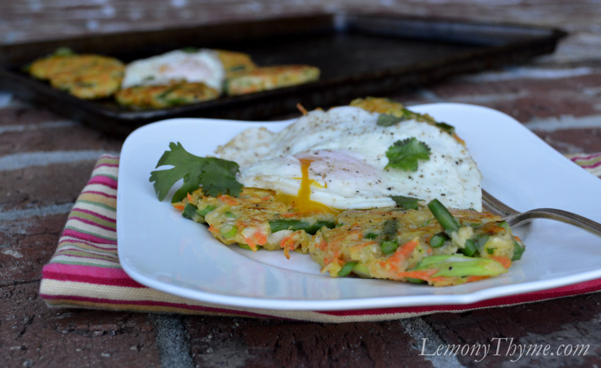 - Fry eggs in skillet and serve on top of veggie pancakes. Garnish with fresh cilantro or parsley.