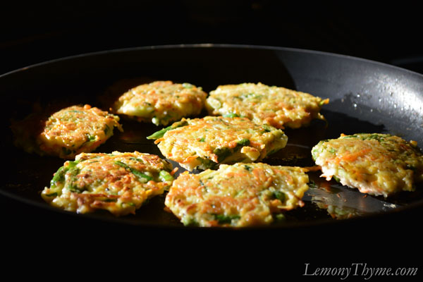 Apparently it was their time to shine. Shredded veggies tossed in a simple batter made from flour, egg, buttermilk, panko crumbs and seasoning.