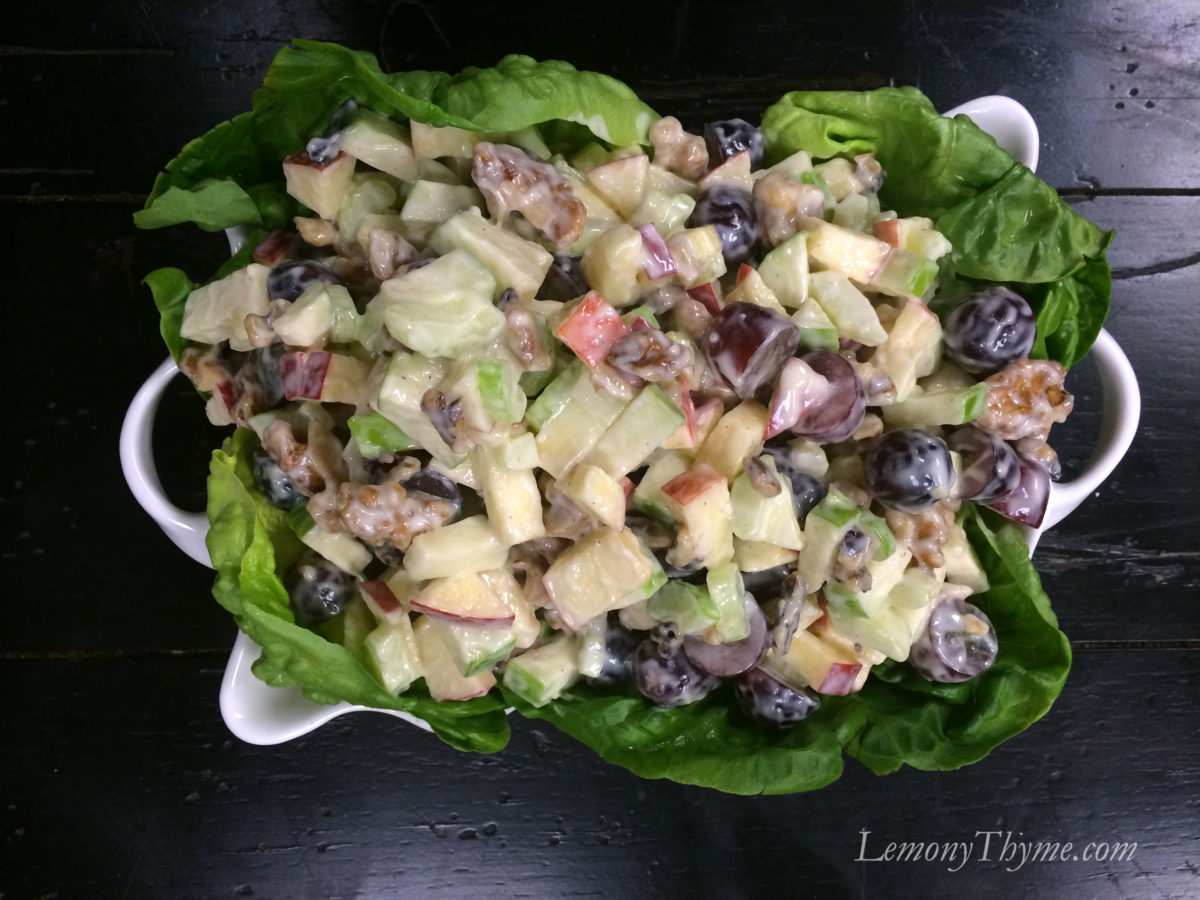 One by one I’m recreating classic salad recipes to share on Lemony Thyme. It’s been quite fun bringing life to favorites like the Lunch Counter Chef Salad, the Classic Cobb Salad and now this delicious Waldorf Salad {with Honey-Cardamom Dressing}.
