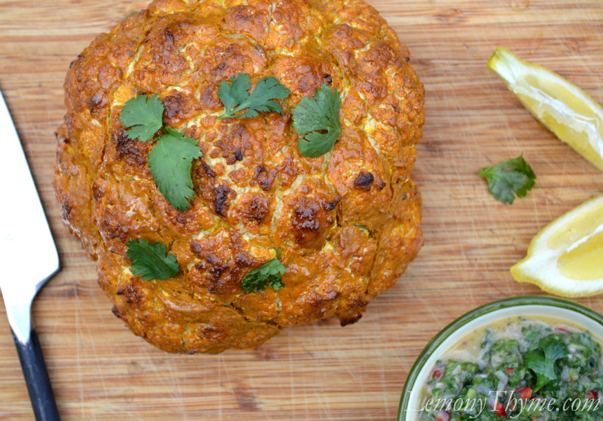 Whole Roasted Tandoori Cauliflower {with Mint Chutney}